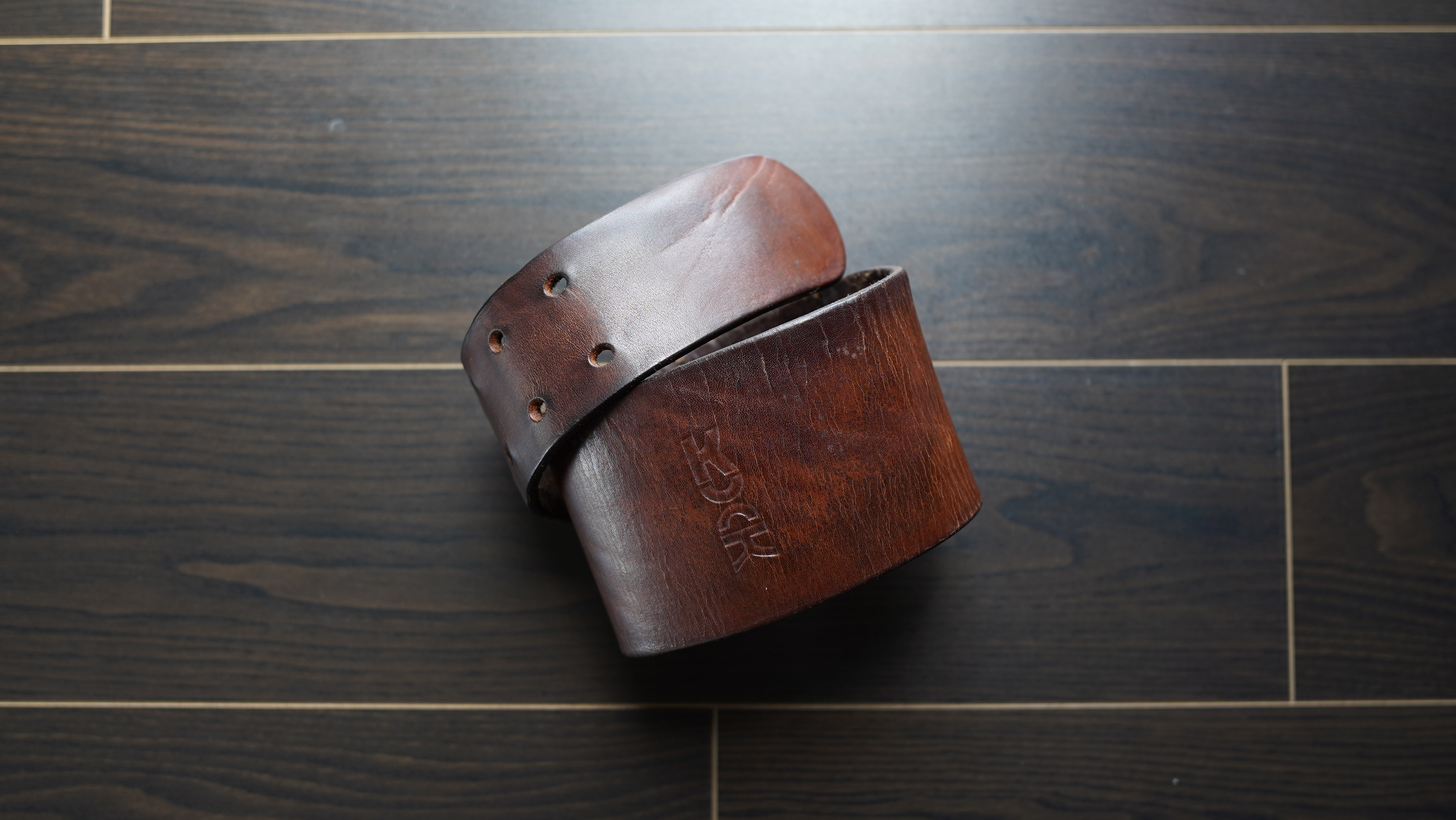 2年ほど前に、オリジナルで作成して頂きました。本革製で初期は白っぽかったのですが使い込むことで味が出てきます。革財布やレザーシューズに愛着が出るように、僕はこのベルトを毎日育てているという感じ。